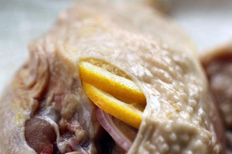 Place chicken, breast side down, on a cutting surface.